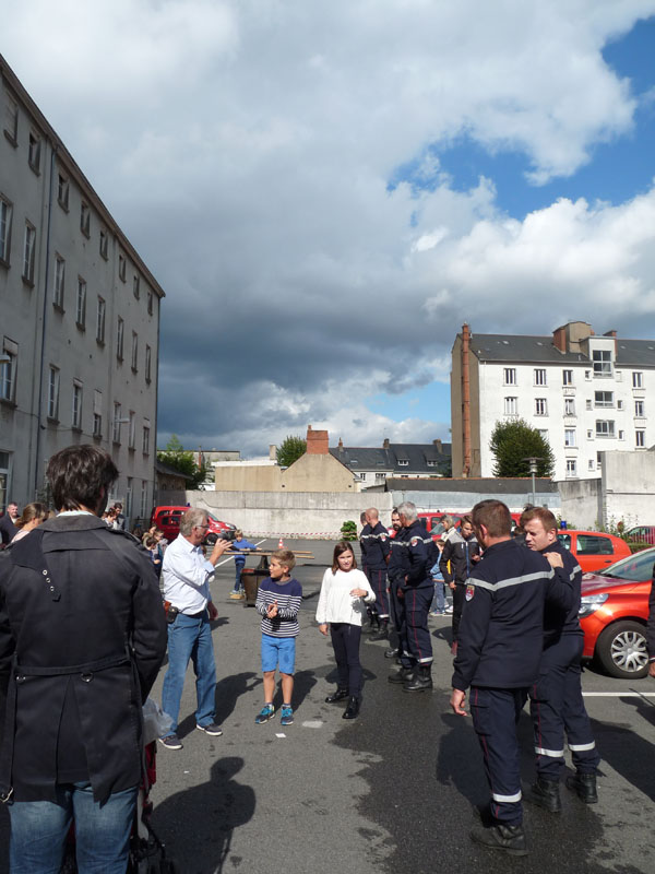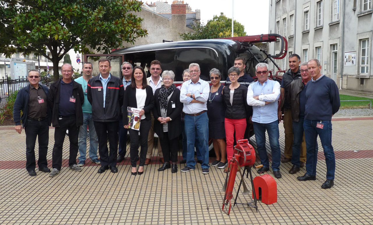 Visite de madame la maire de Nantes Johanna Rolland qui souhaitait rencontrer l'équipe du musée et ses bénévoles. Elle tient dans ses mains le dernier ouvrage sur les uniformes de Sapeurs-Pompiers de Frédéric Coune, publié en 2014 et réalisé en collaboration avec les équipes et les collections du musée.